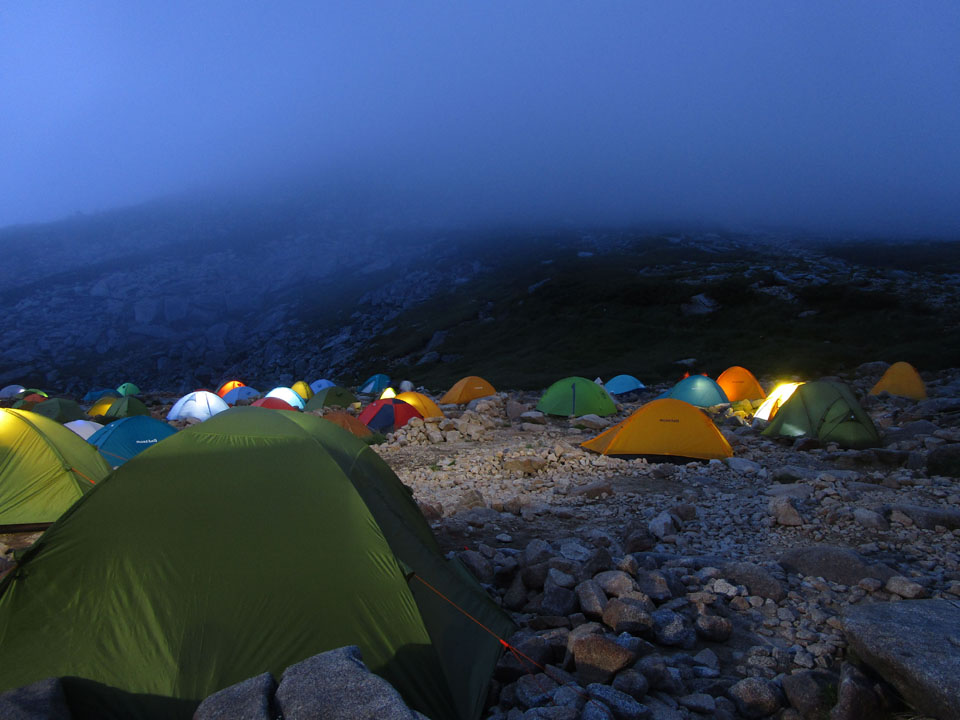 1日目は昼頃遅めに登り、最終日は朝イチで降りると、混雑を回避できる。