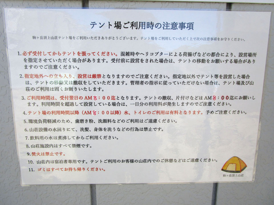 完全予約制だが、土日にめちゃ混んでいる頂上山荘テント場より快適そう。