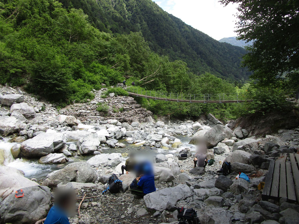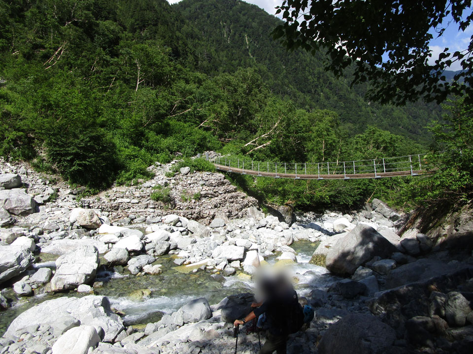 上高地〜横尾間は、頑張れば2時間ジャストで歩ける。