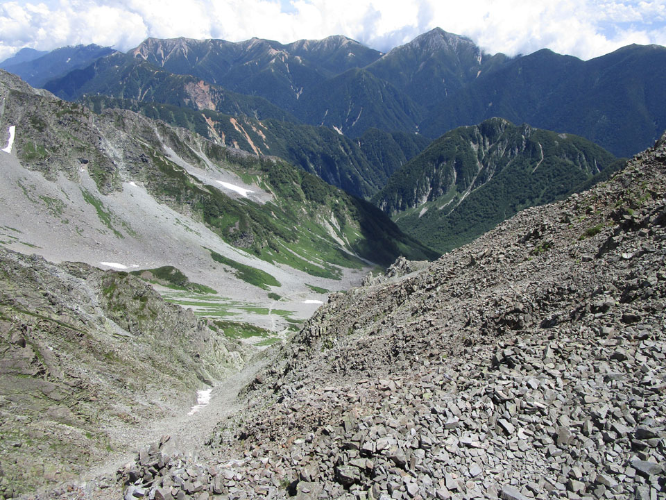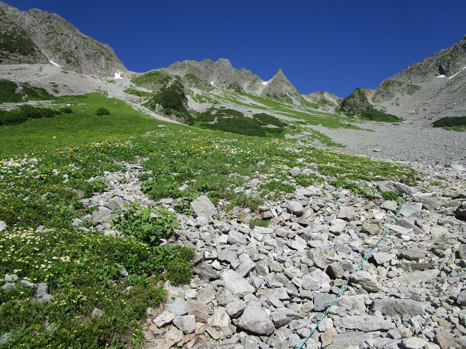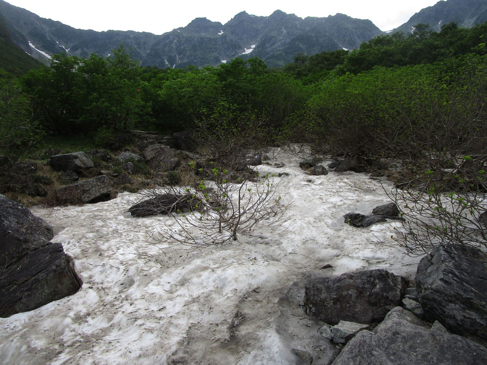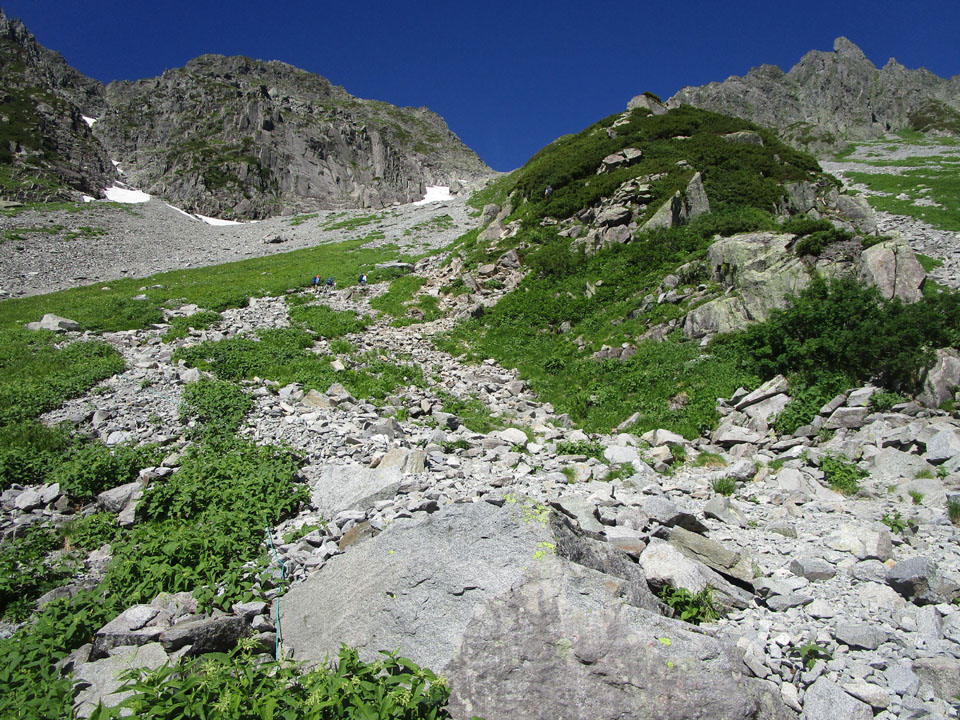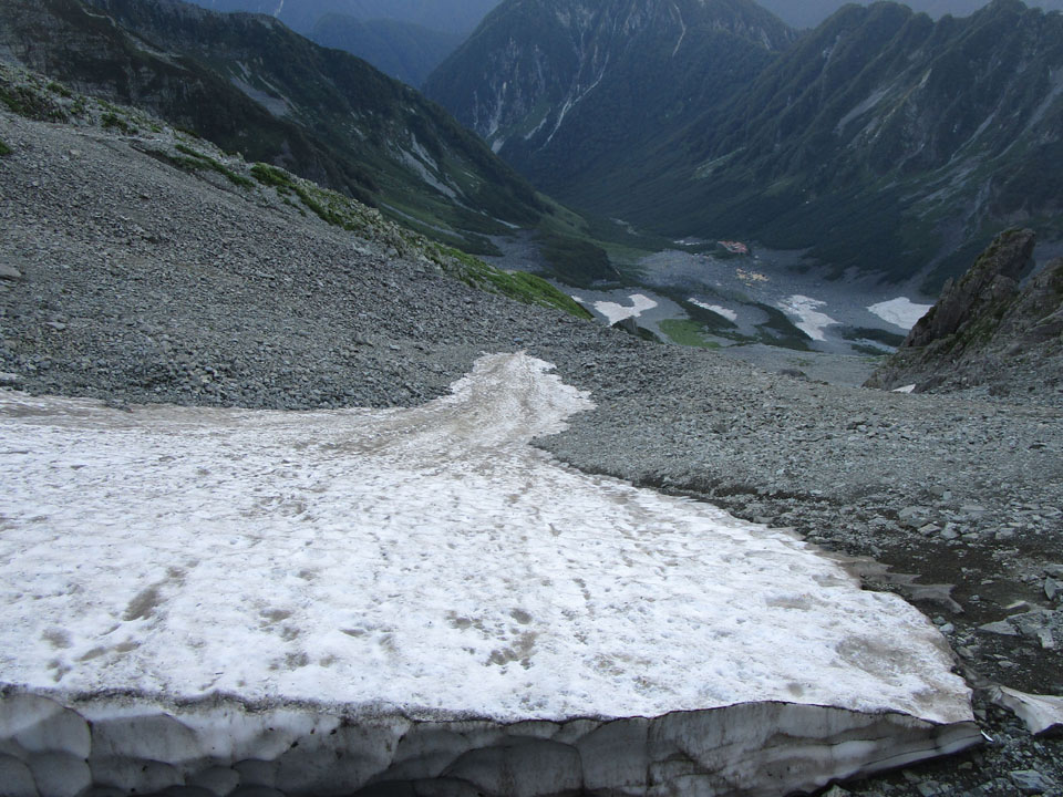 雪渓が残る。