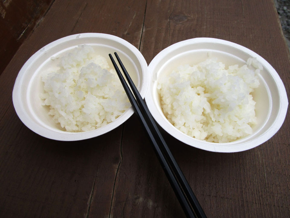 涸沢小屋ではお湯だけ貰うことも可能でアルファ米を作成できる。