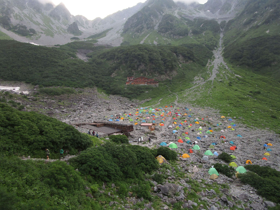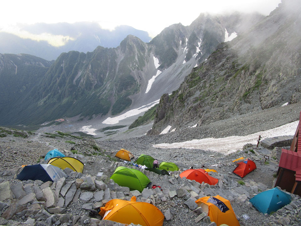 奥穂山頂等でビバークになってしまったという話も聞く(奥穂山頂は5張程度)。