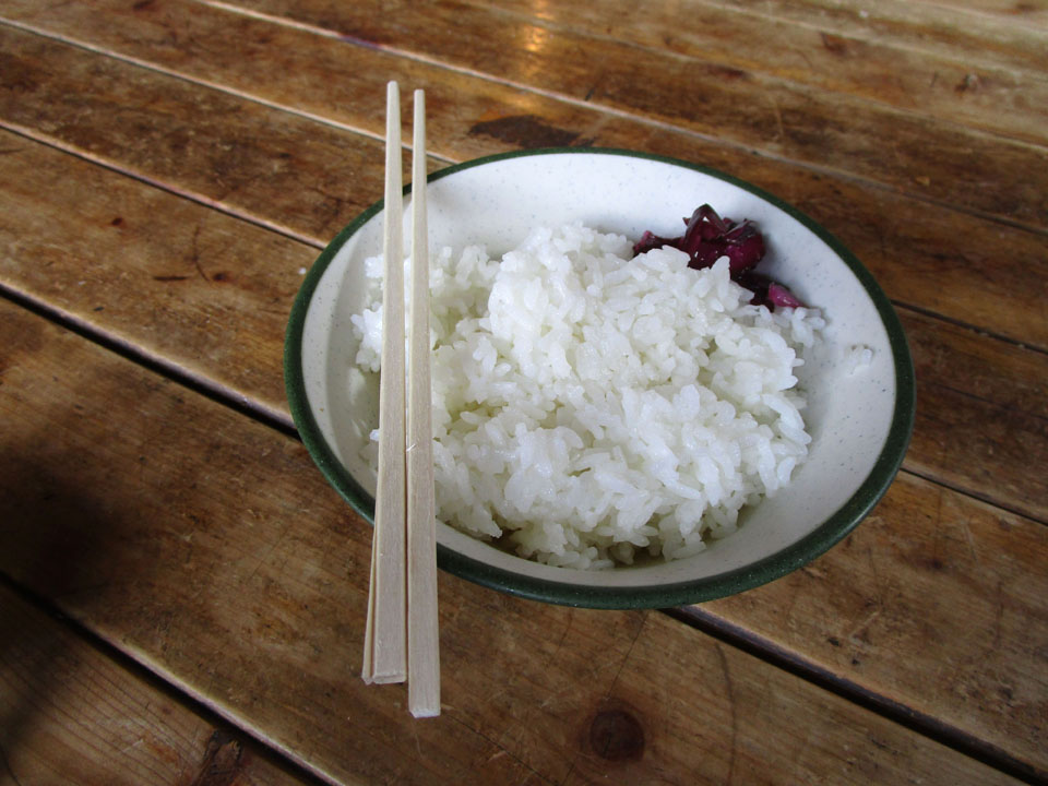 徳沢では、毎度、卵かけごはんを食べる。腹が減ったので2杯食べる。800円。
