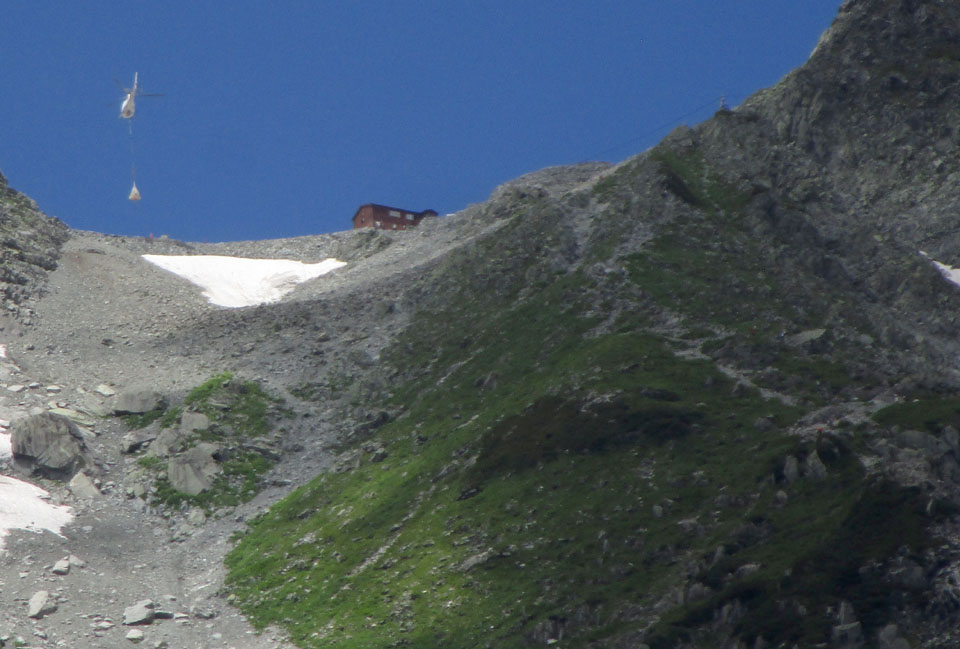 穂高岳山荘にヘリで荷揚げしている。