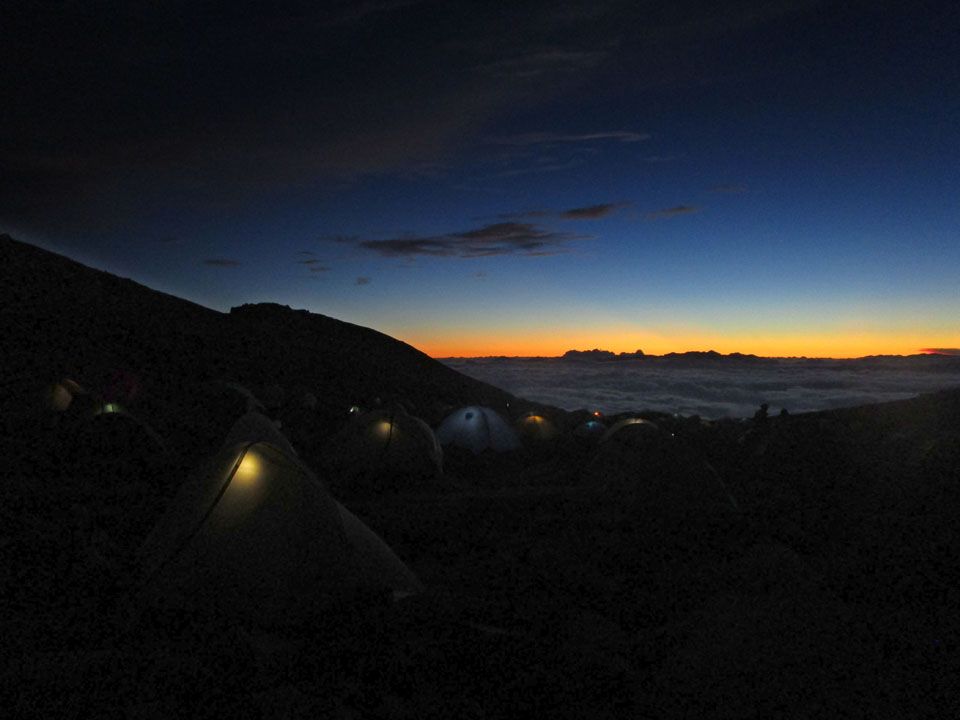 テント場に荷物をデポ。