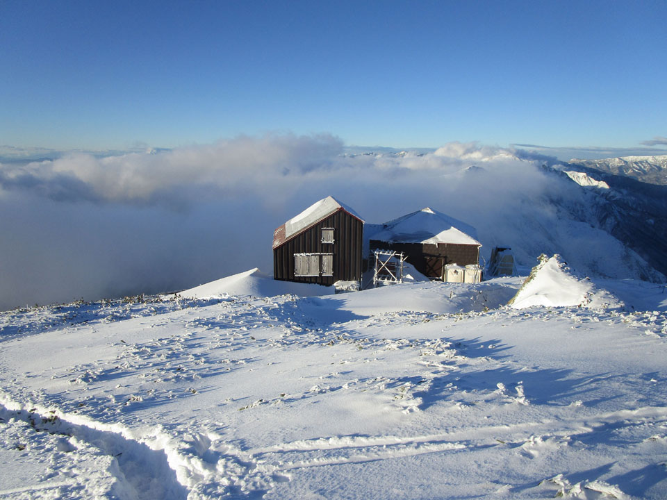 100cmくらいまでなら途中の熊穴沢避難小屋が利用可能で、
