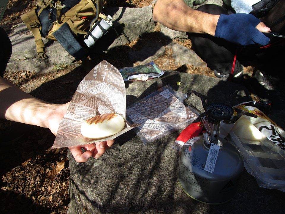 10mほど下った場所にある休憩ポイントで、昼飯にする。