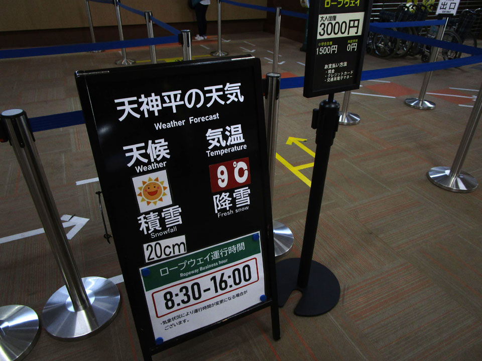天神平では+9℃。積雪20cmほど。