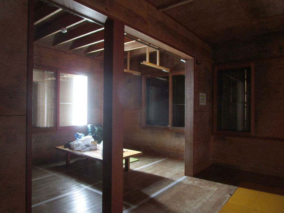 今回は平日山行(日曜日〜月曜日)のため、人もおらず、小屋は貸し切りで宿泊できた。