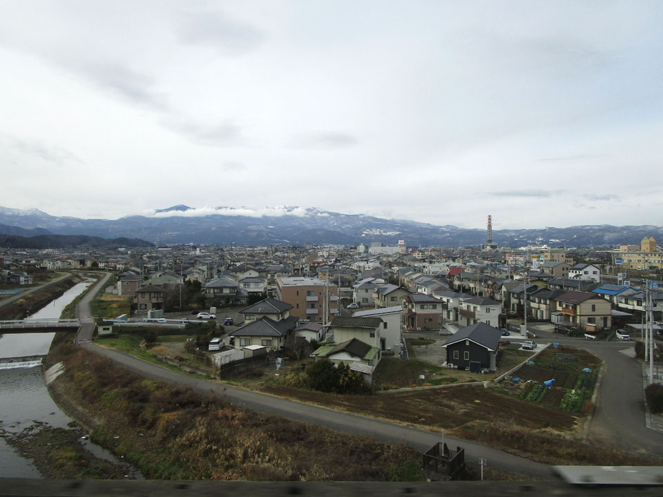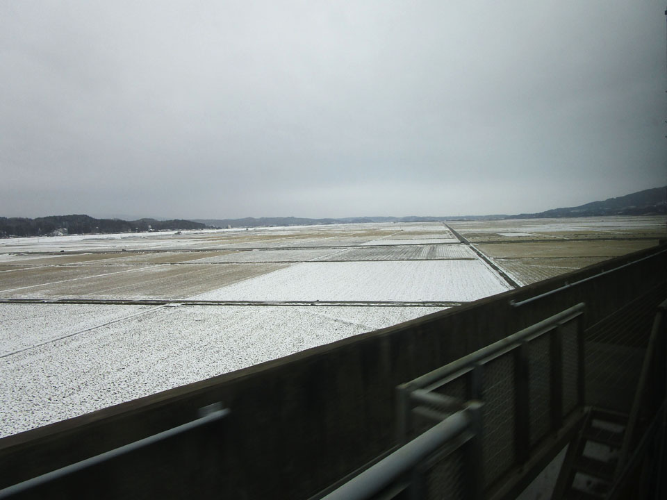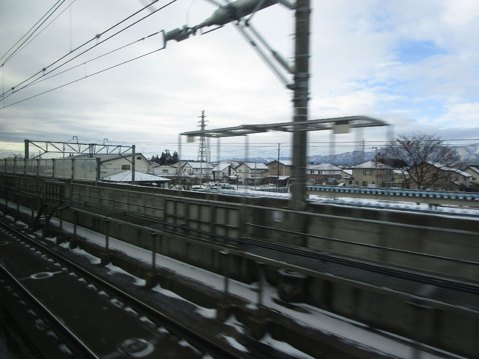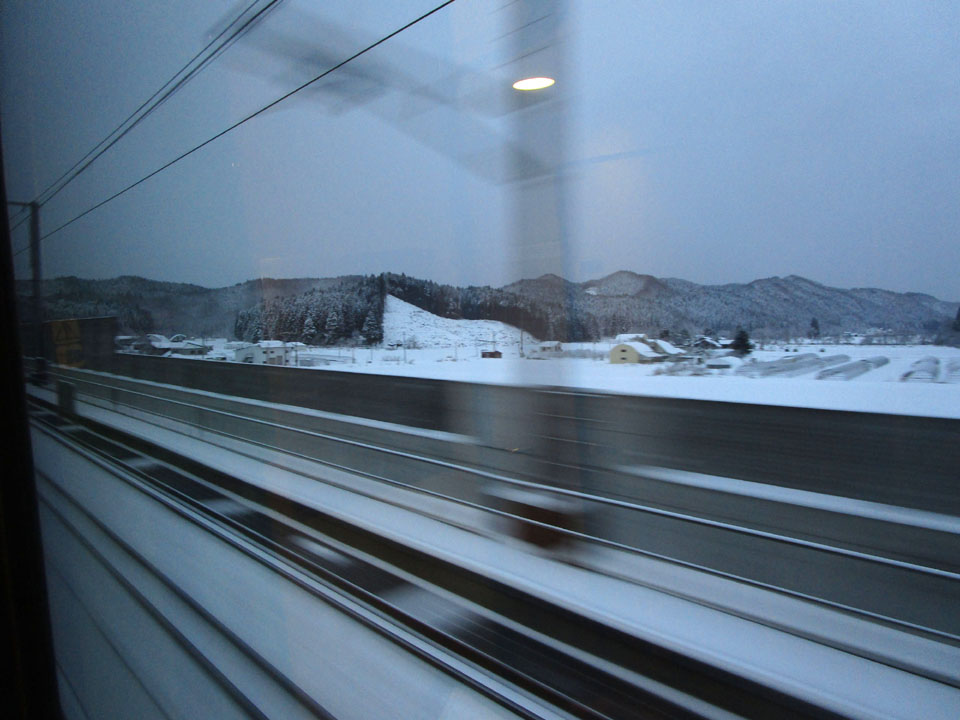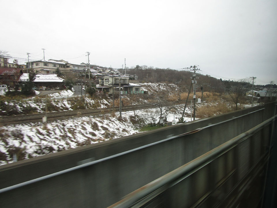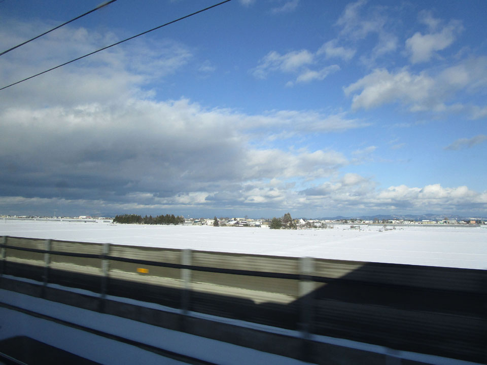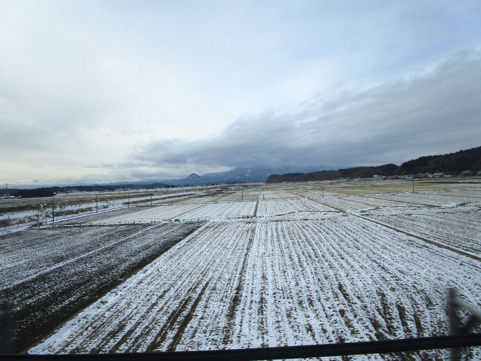 古川くらいになると一気に雪景色。