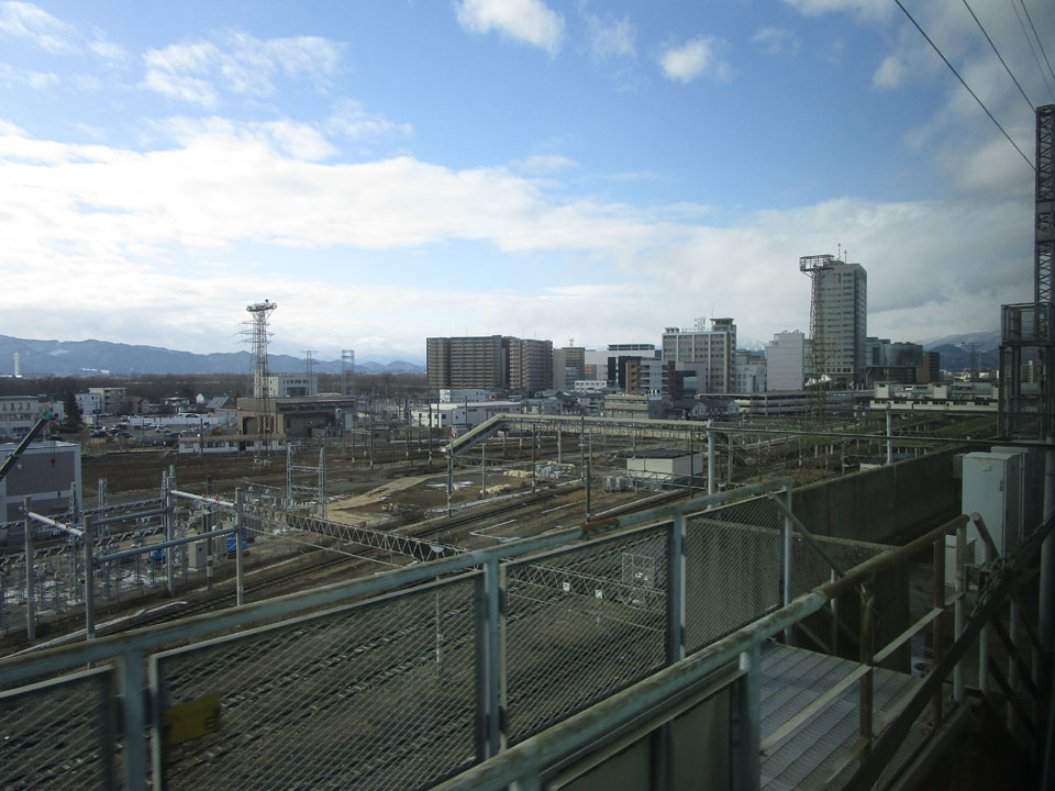福島駅を通過。アプローチ線の建設が進んでいる。