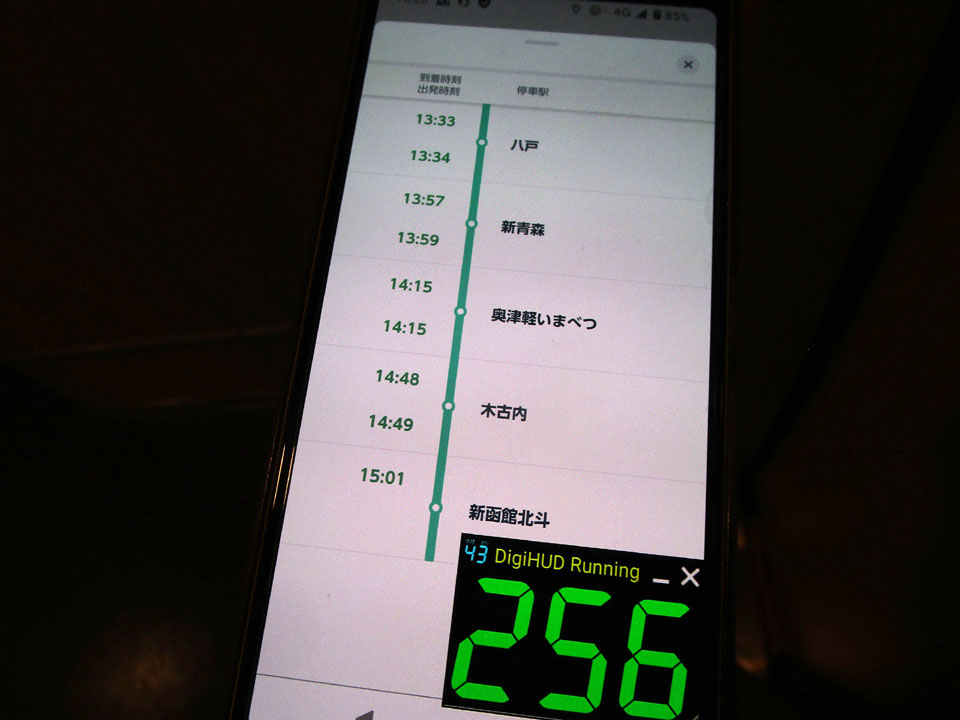 発車すると140km/h走行だが、青函トンネルに入ると少し加速するのがわかる。160km/h走行だ。