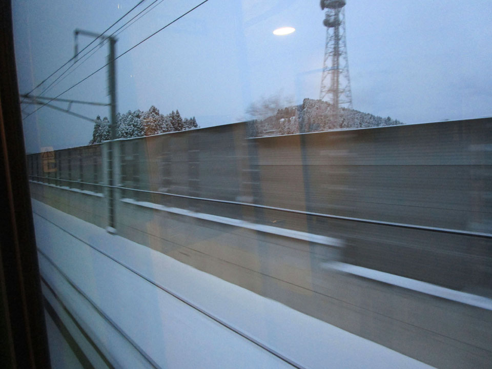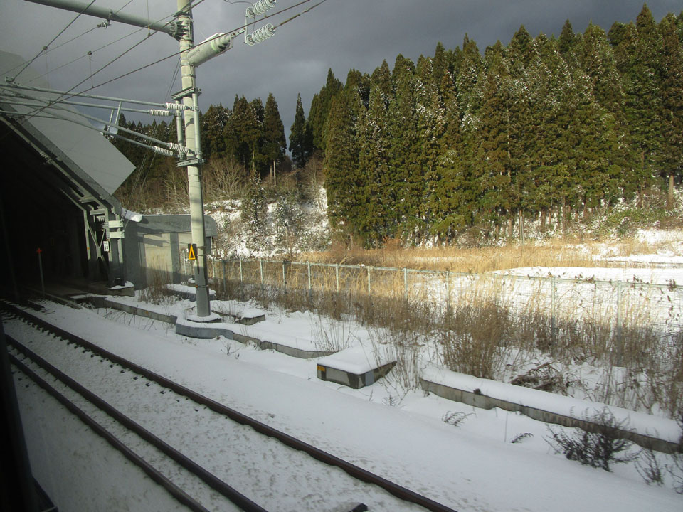 ここでE6系の車体の雪落としをするため、3分遅れ。