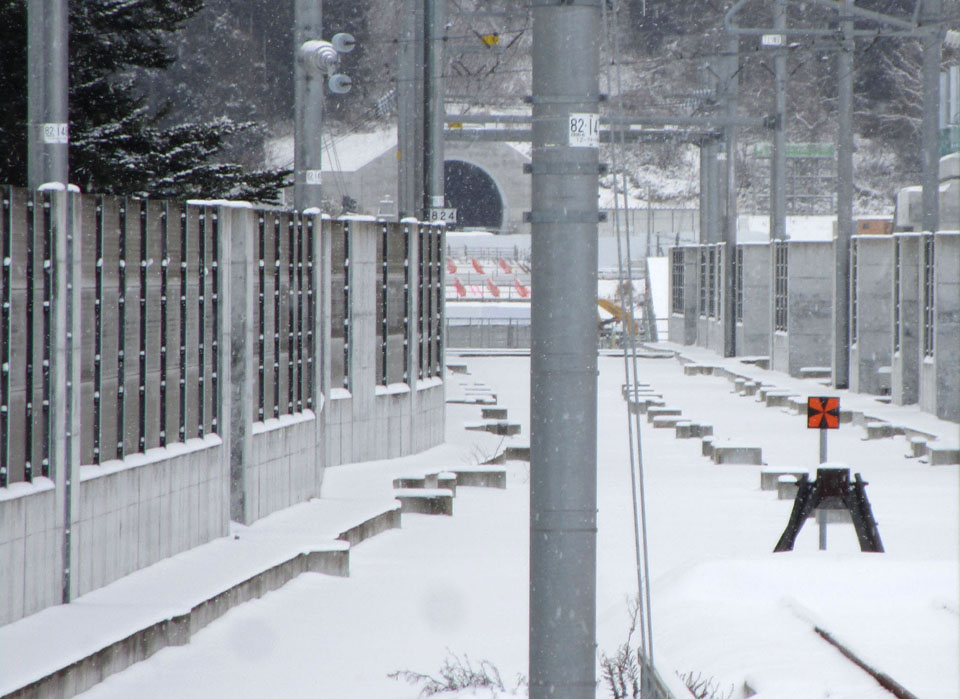 特に路盤コンクリートが大きくかさ上げされている様子もなく、あまり大雪にならないのだろう。
