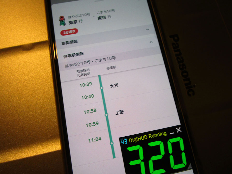 いつも乗っている各停「たにがわ」「あさま」などと比較し表定速度が2倍以上出ている。