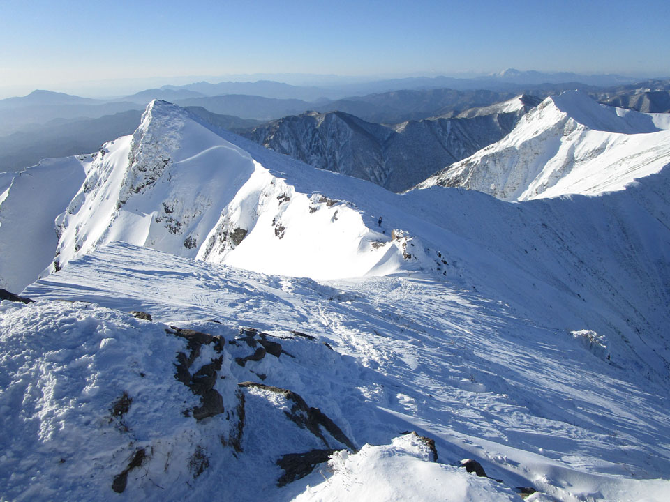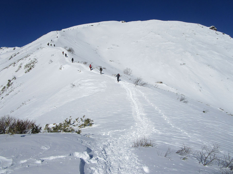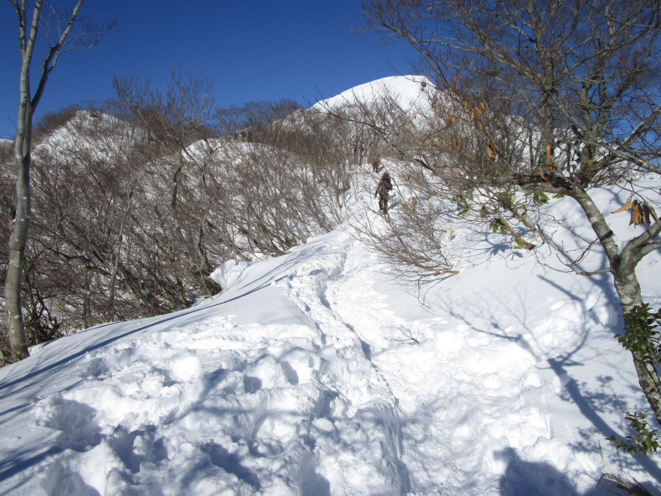 茂倉岳方面。トレースあり。すごい。