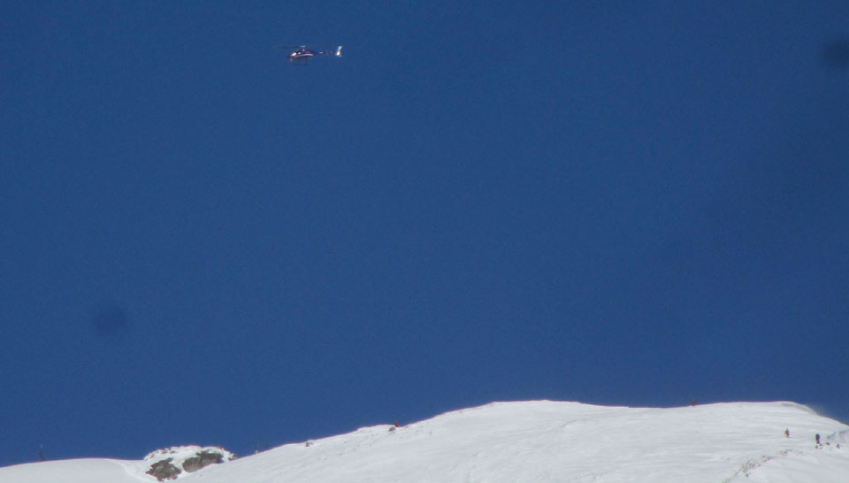 山頂ではヘリが作業中。なんだろう。