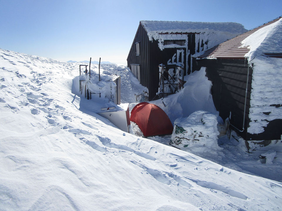 肩の小屋。ここに荷物をデポする。