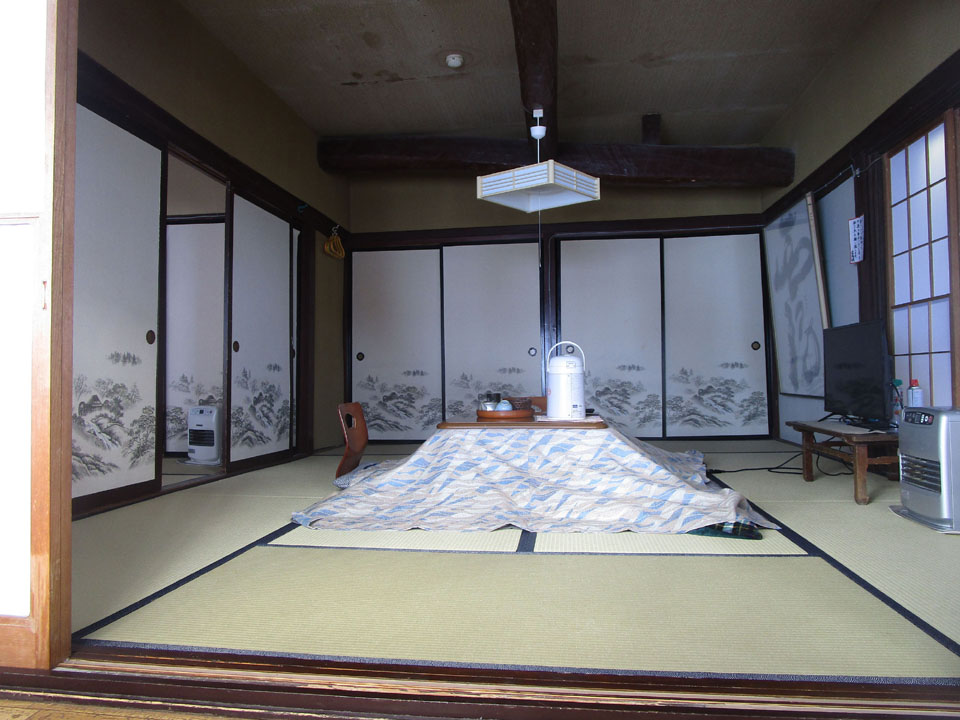 部屋は石油ファンヒーターと電気こたつがある。