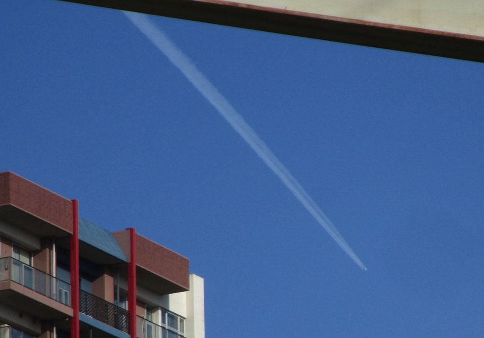 飛行機雲が多い。羽田〜北海道方面の便が多い。
