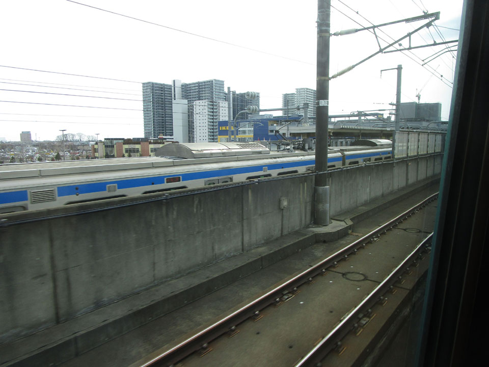 普通電車を追い抜く。