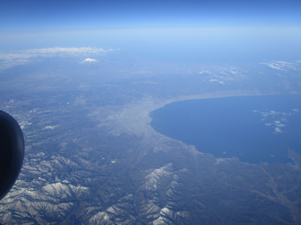東側を向く席では、羽田便ならともなく成田便だと海しか見えないのである。