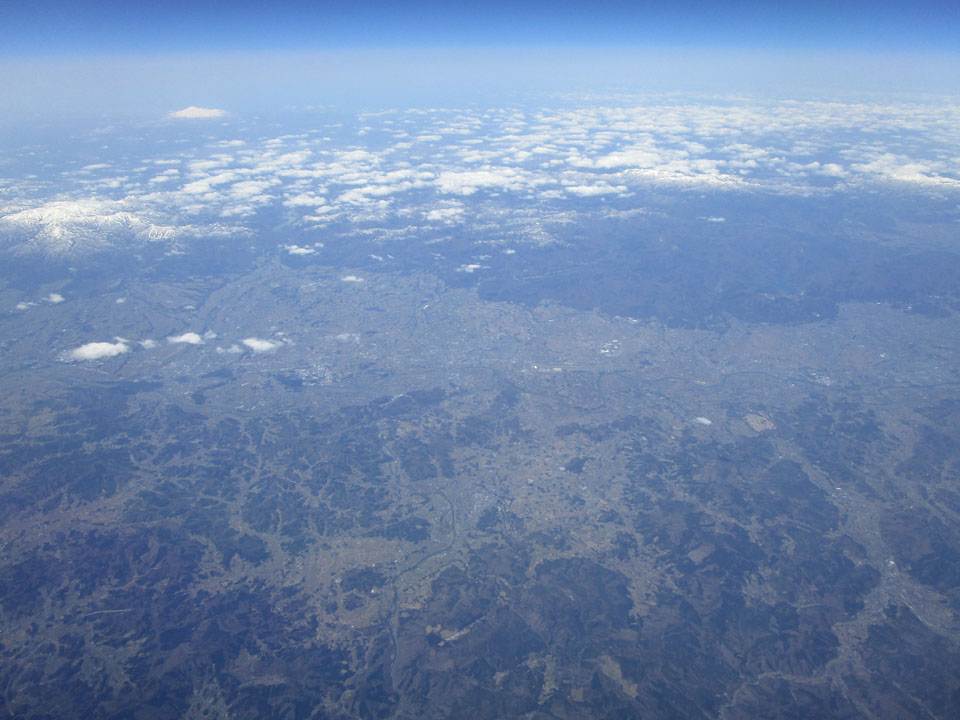 山形が見える。山形空港は結構とおい。