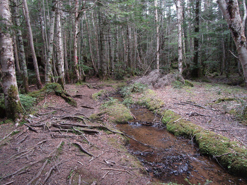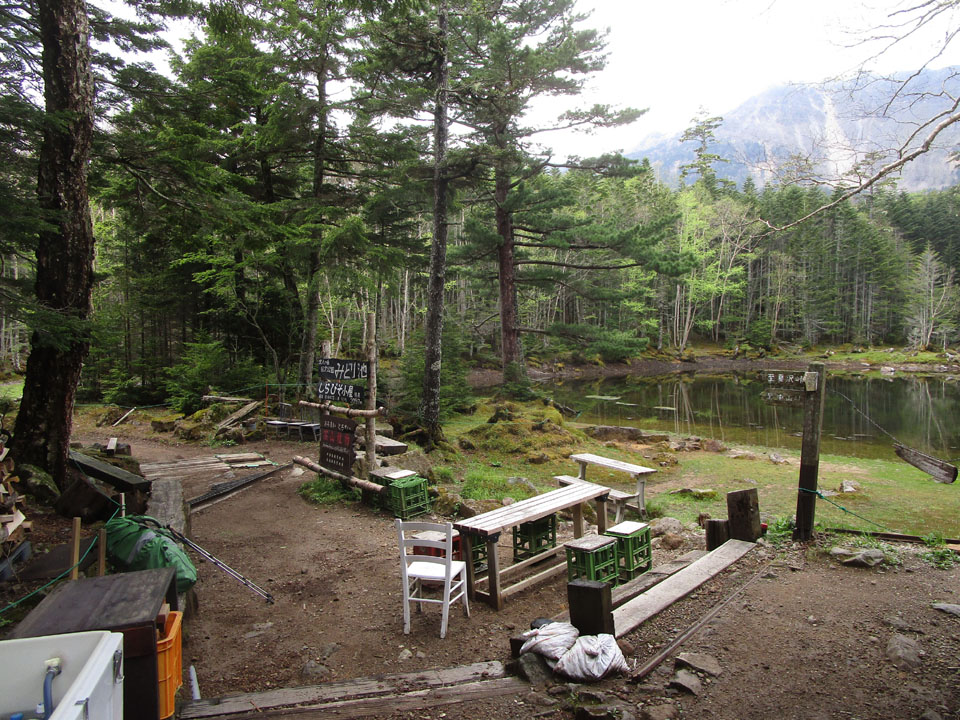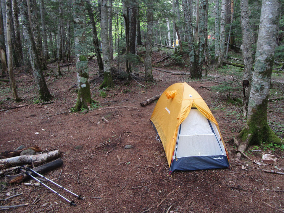 テント場は、少し下がった2,070mあたりにある。水場もある。