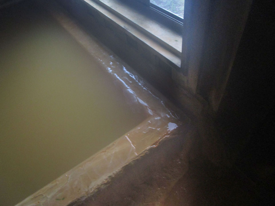 温泉の投入口は湯舟の中なので、新鮮な温泉だけで洗うことはできない。