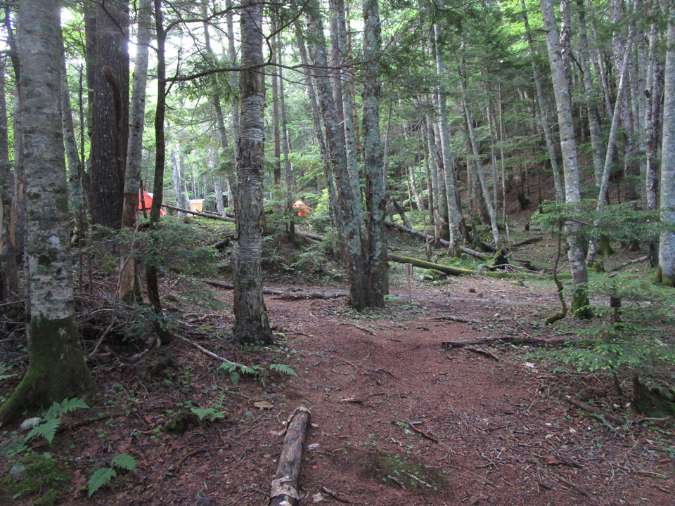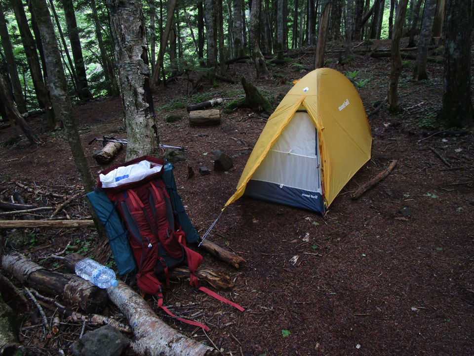 テント場は、少し下がった2,070mあたりにある。水場もある。