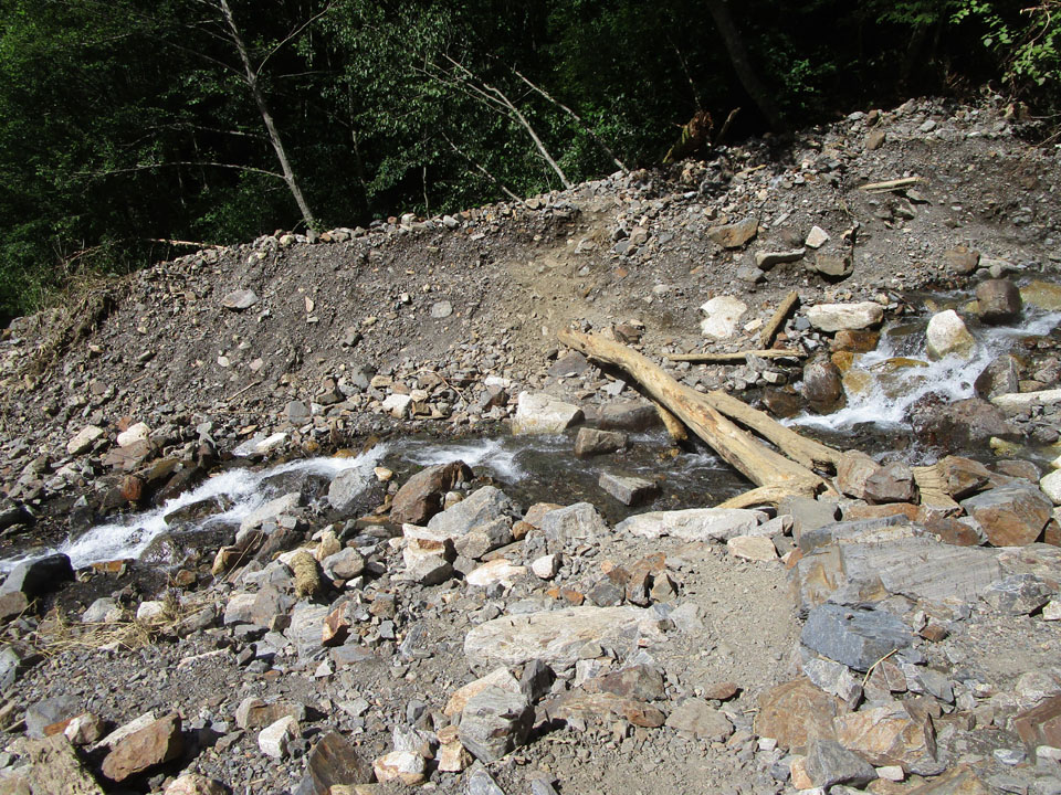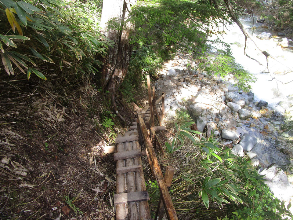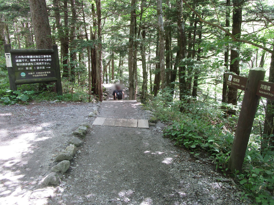 槍沢ロッジまでは、豪雨で仮設登山道になっている区間がある。