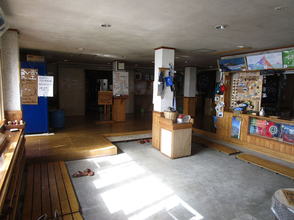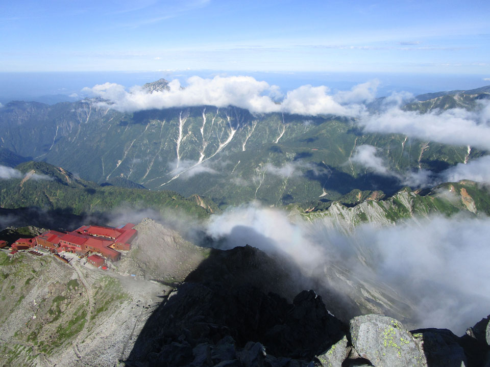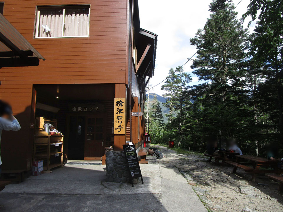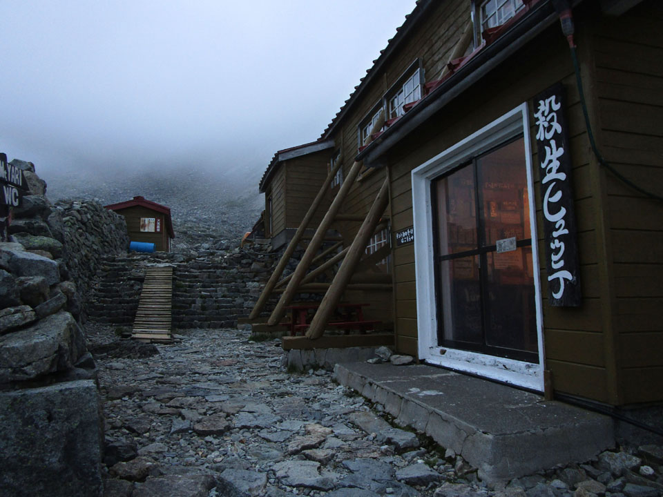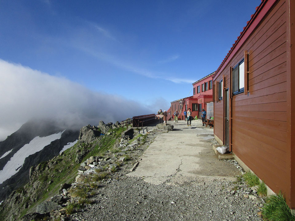 槍ヶ岳山荘の軒先は風雨・日差しが避けられるエリアがあり、ありがたい。