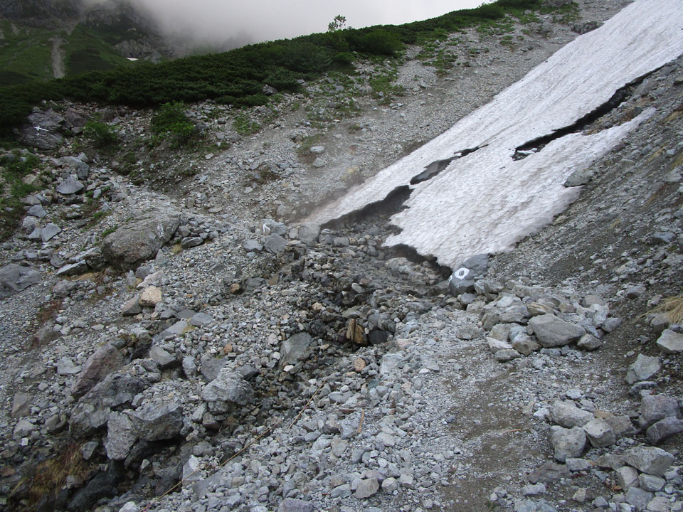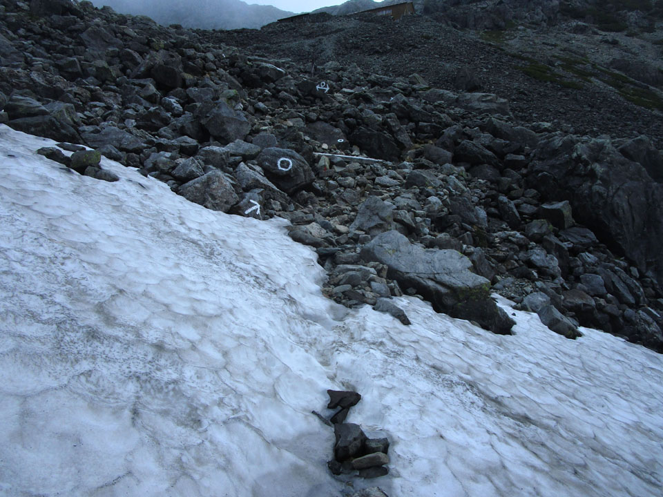 滝谷避難小屋付近を通過。幽霊が出るという噂だ。