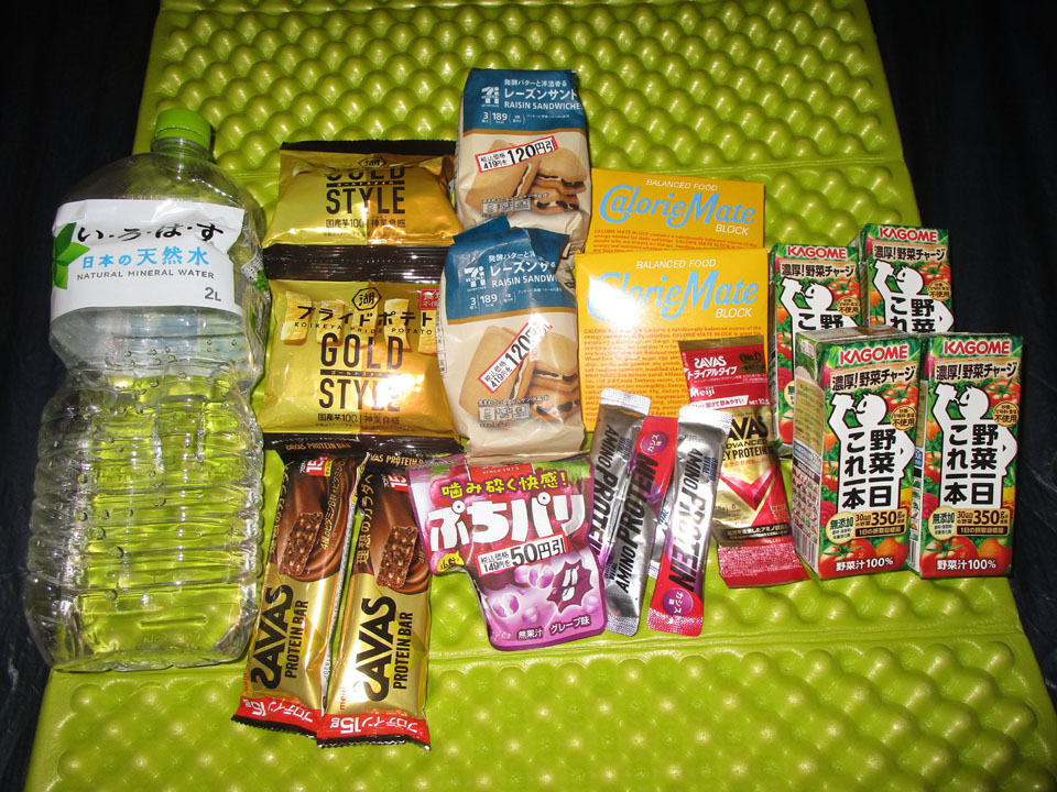 水(ミネラルウォーター)は売ってなかった。行動食は売っている。