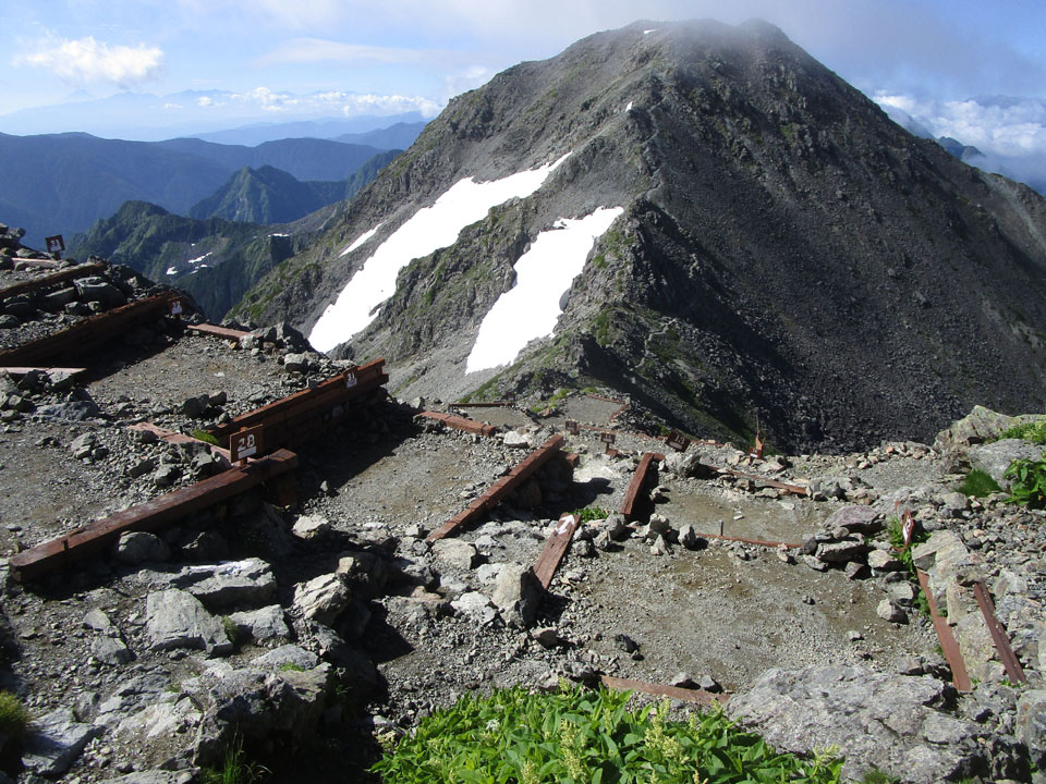 槍ヶ岳山荘テント場は、標高3,070mで日本最高所のテント場である。