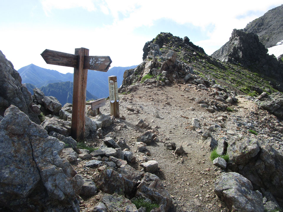 飛騨乗越までは稜線である。テント場の下部から下り3分ほど。とても近い。