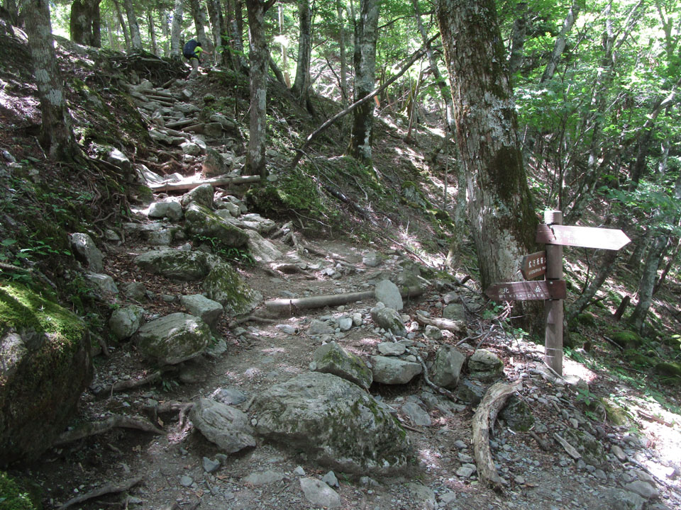 しばらくは沢沿いの登りだ。このため少しは涼しい。