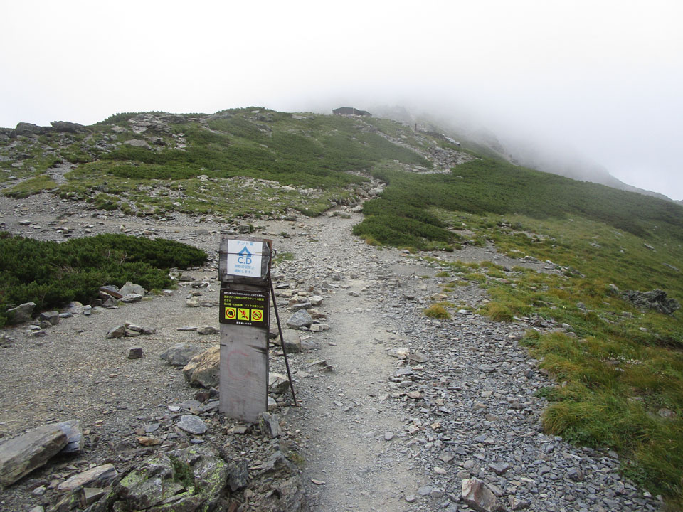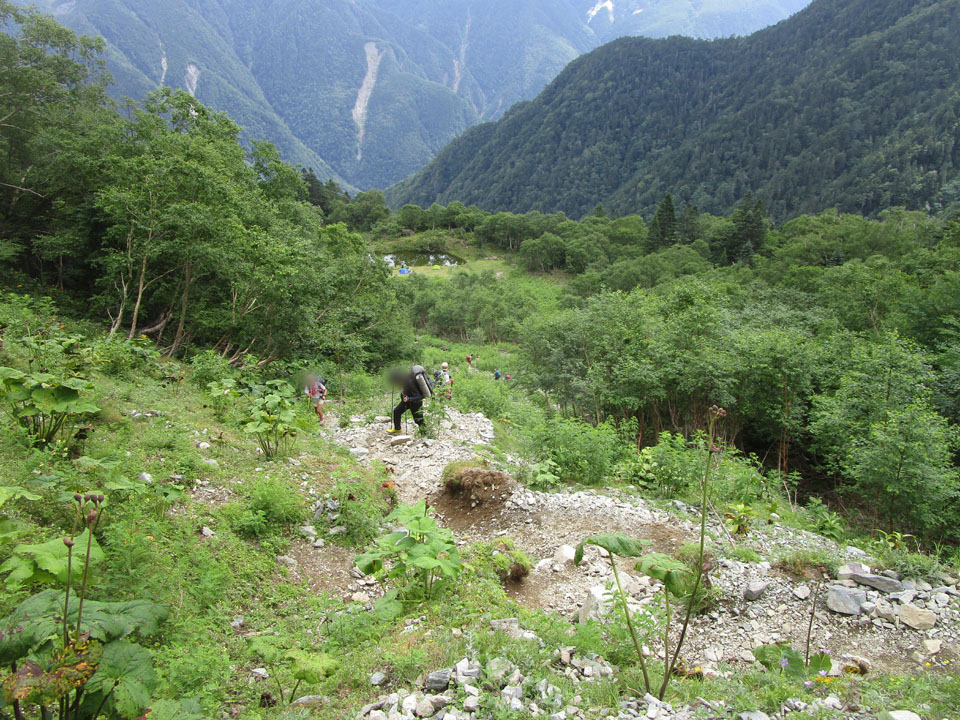 2700m付近で森林限界。2750m付近で大樺沢二俣からのルートに合流。