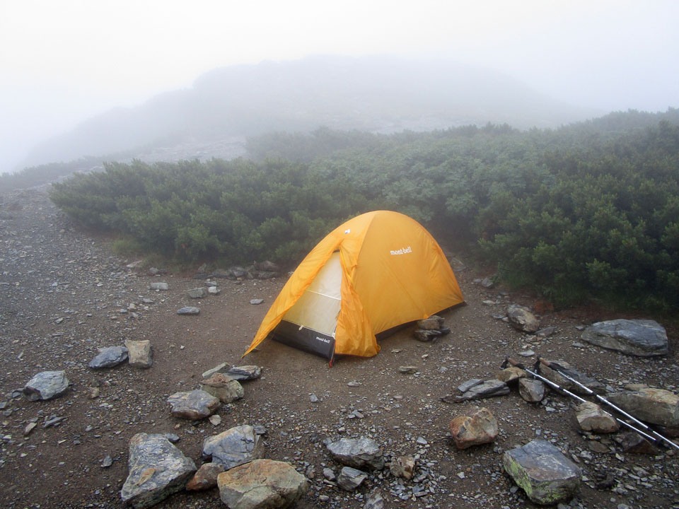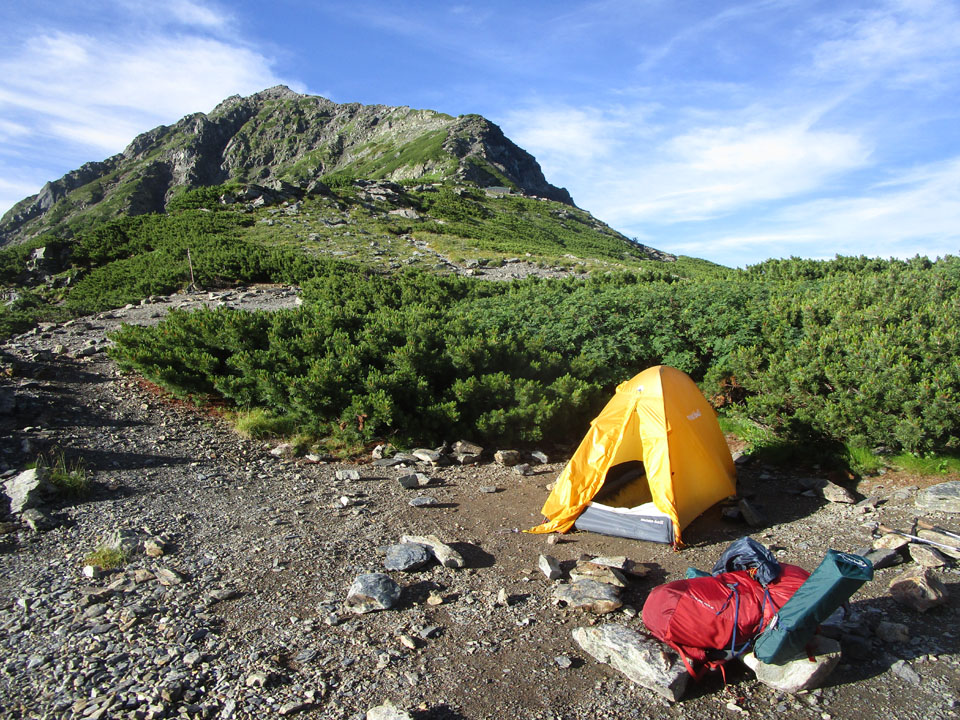 1泊目は風が強い予報(20m/s)のため、北岳白根御池小屋に幕営である。前泊みたいなもんだな。