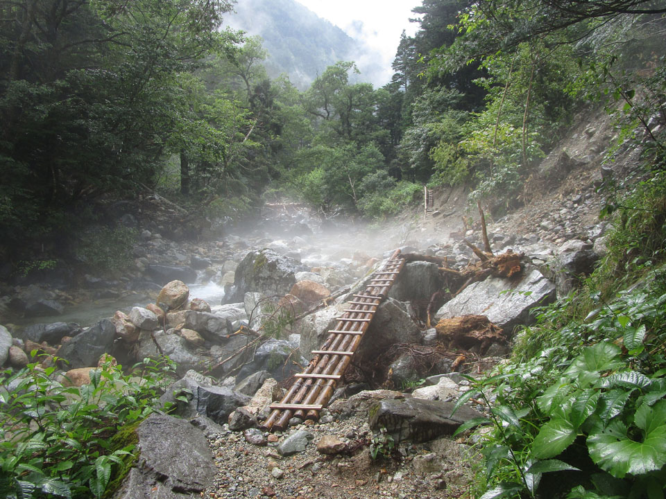 飛騨沢ルートは、徒渉があり、大雨時には通行できない。