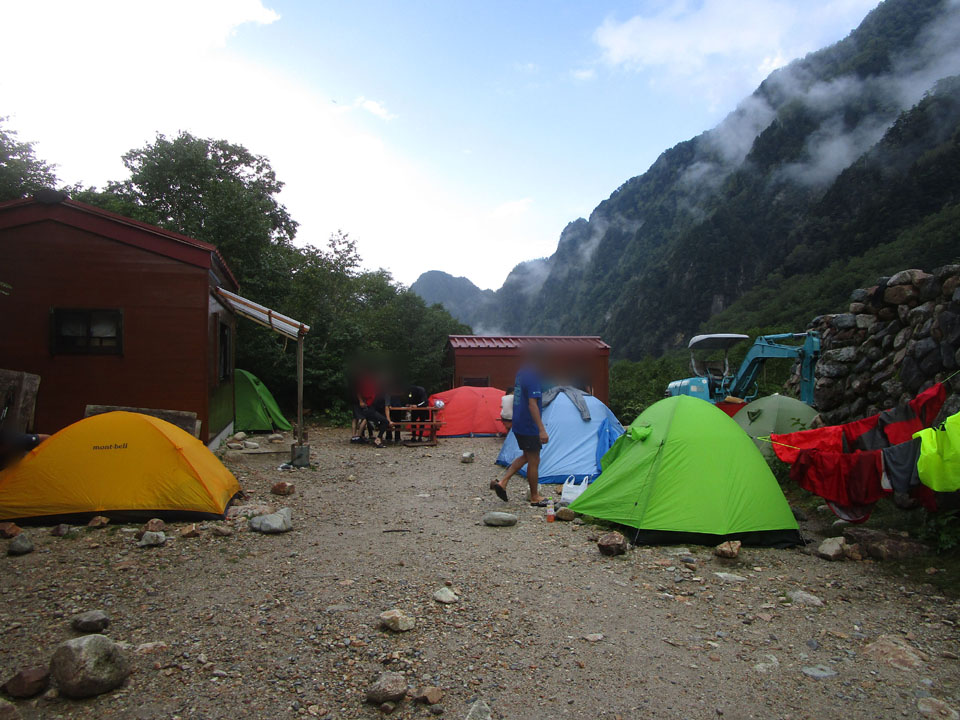 ババ平のテント場。雨はやんだ。
