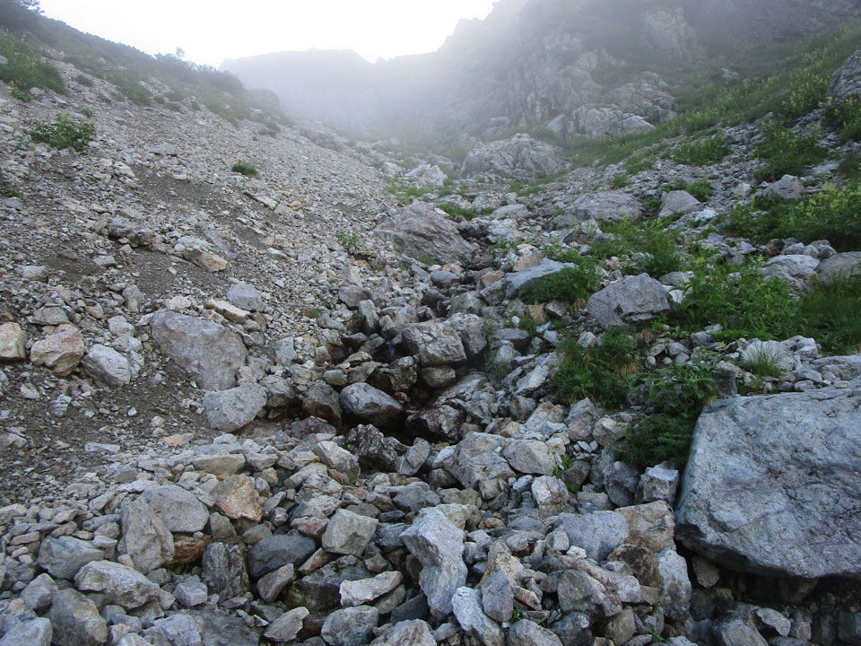滝谷避難小屋付近を通過。幽霊が出るという噂だ。