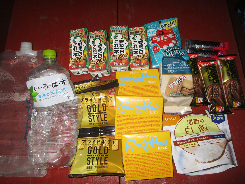 食料は2日分で約0.5kgだが、小屋の食事に頼る予定だ。