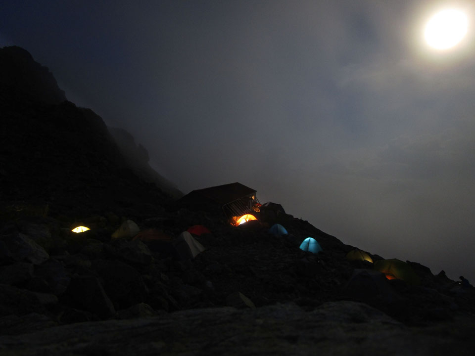 ただし、槍ヶ岳方面に行こうとすると声を掛けられる可能性があるが、テント場から抜けられるという噂だ。