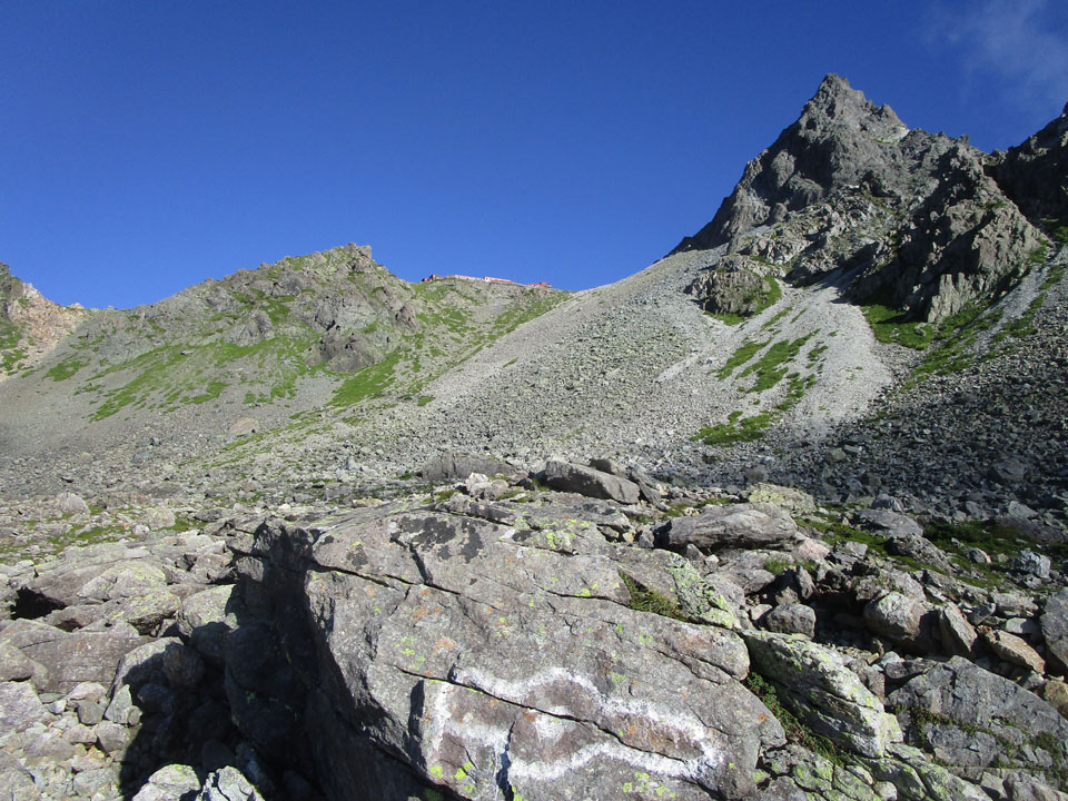 ところが、次の殺生ヒュッテ2860mまでいければ、おおむね山頂泊ということでいいだろう。