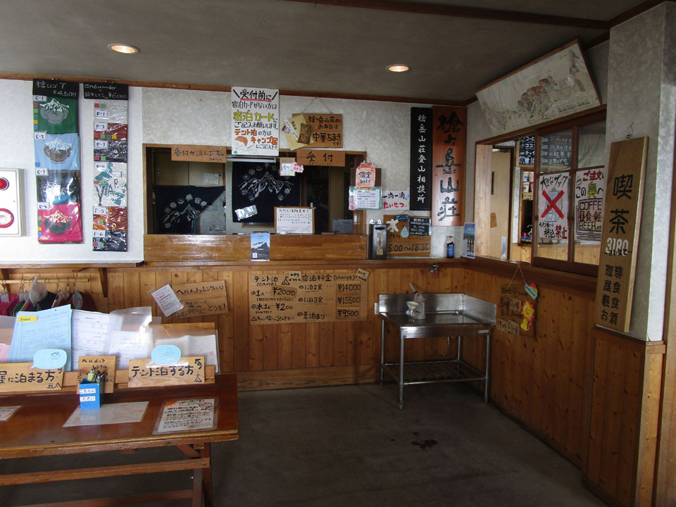 槍平小屋。電波なし。標高1,980m。