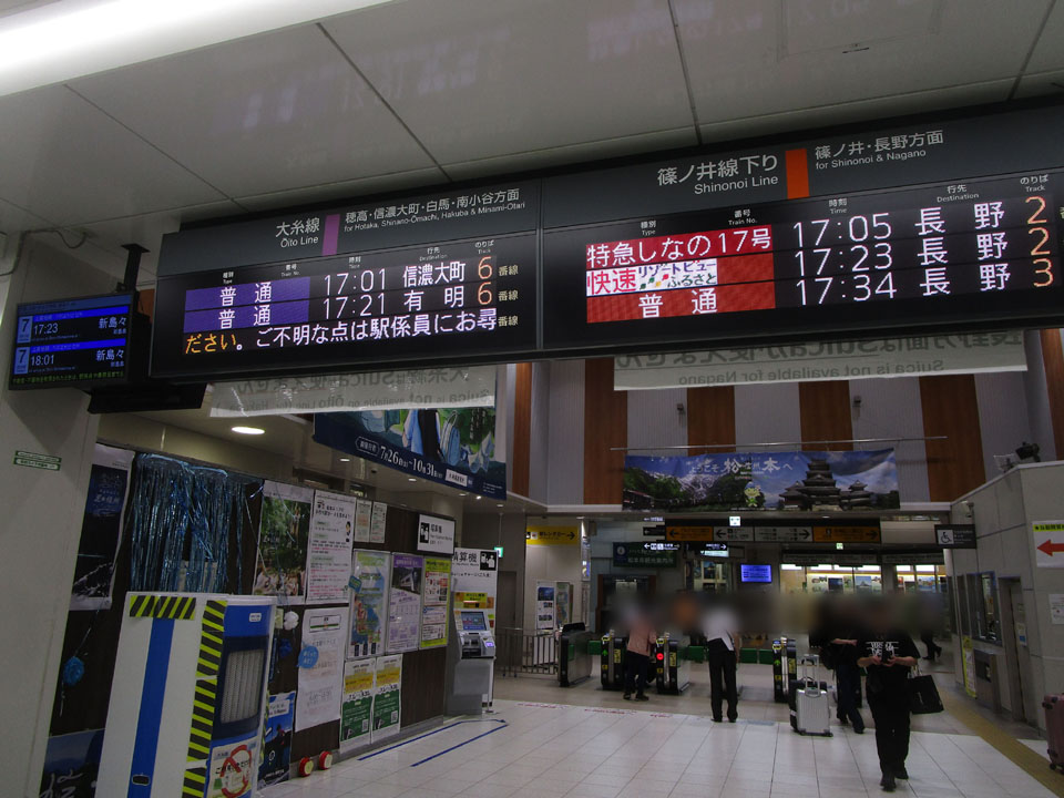 バスが遅れて松本からの普通電車にギリギリ間に合わず。残念。よって1200円が余計にかかる。