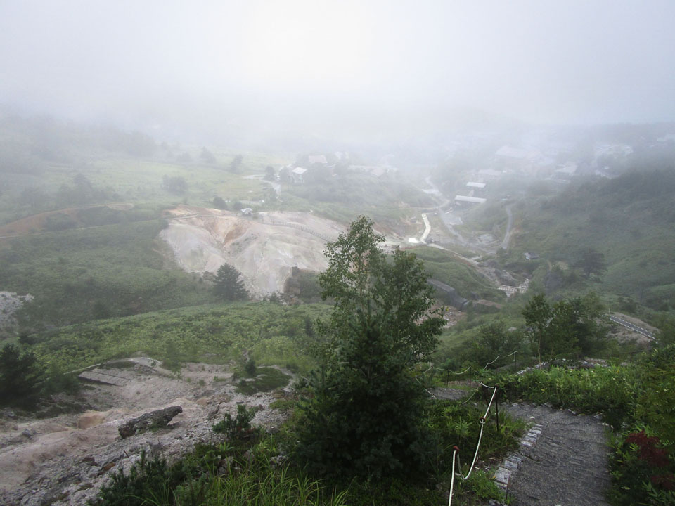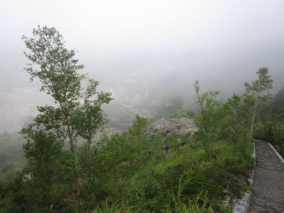 まだチェックインできないということで、天気が悪いが、熊四郎山遊歩道の展望台まで行こう。