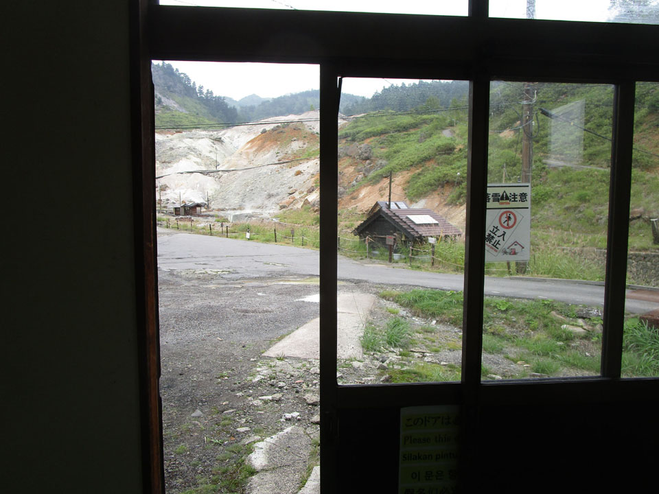 万座温泉が見える。