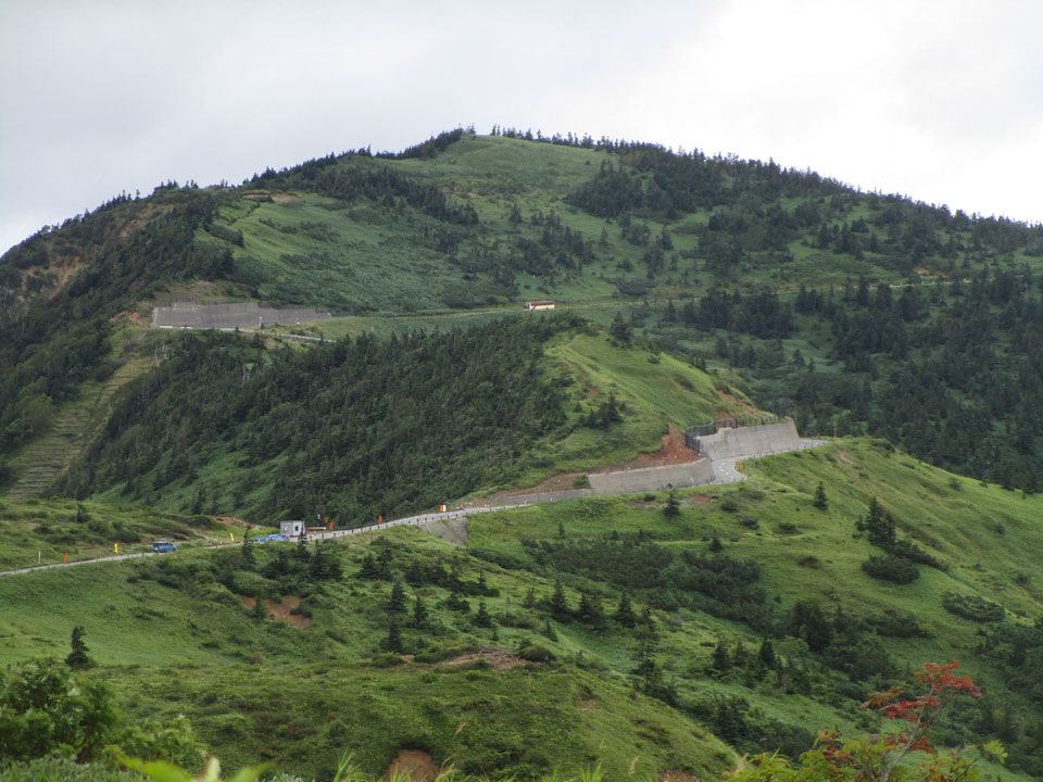 渋峠方面。長電バス(長野〜渋峠〜草津温泉)が通っている。